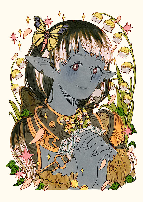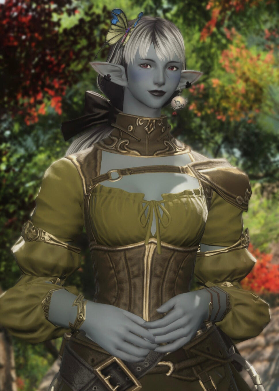 A shy and kindhearted elezen, with a love of nature and fae-folk, baking treats for loved ones, and exploring the world around her for the first time in her life.