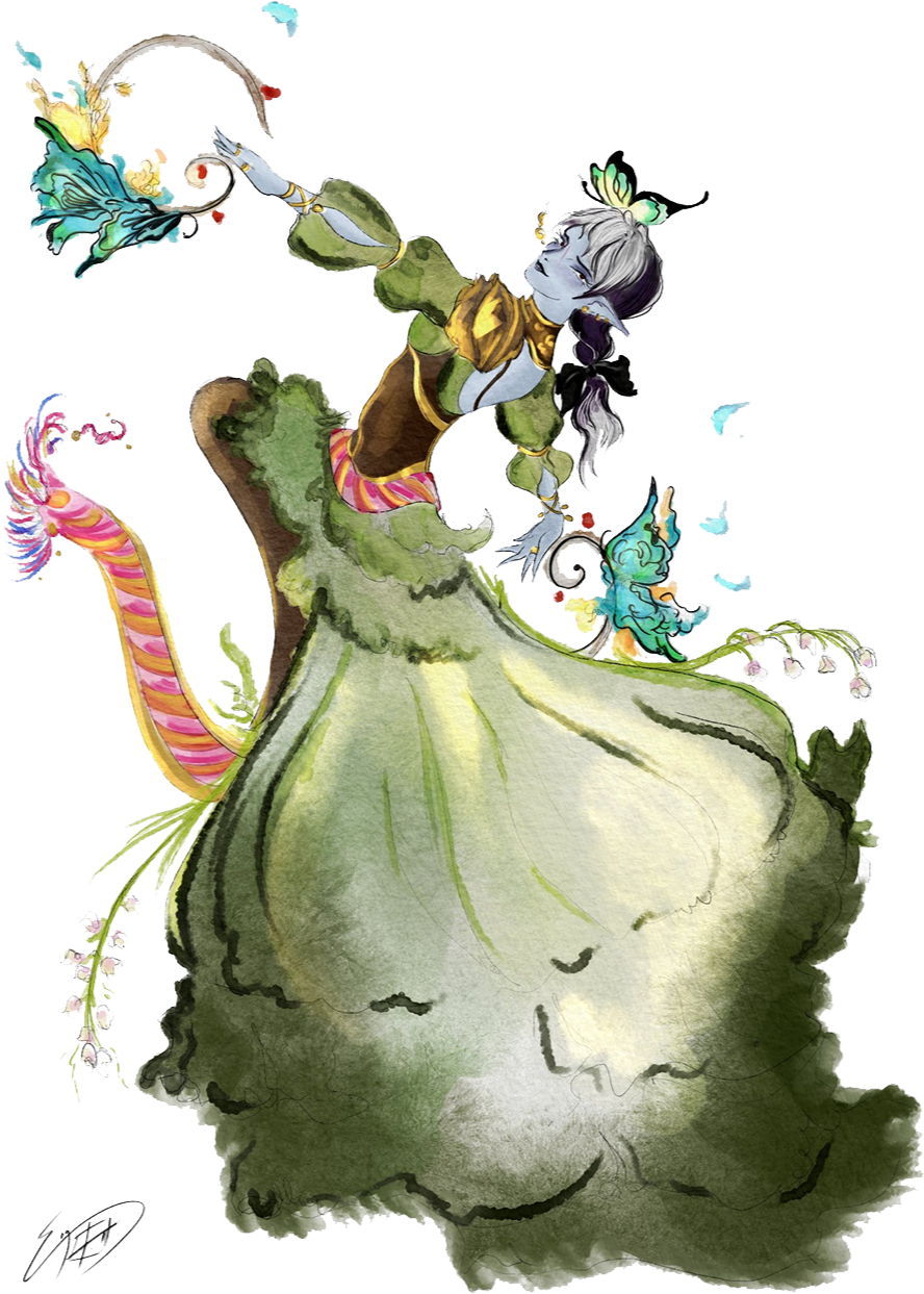 Growing up within caverns along the outskirts of Cortheas, Lilianne lived a quiet and simple life with her parents and neighboring village members. Often one to keep to herself, she would venture into the mountain woods frequently as a child to forage and explore while gathering plants to sell at her local village’s market. As time progressed in her small town, Lilianne would be accustomed to more of the same, until she discovered an inkling of an interest in the occasional Camp Dragonhead traveling knights.